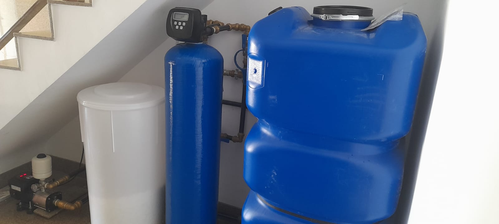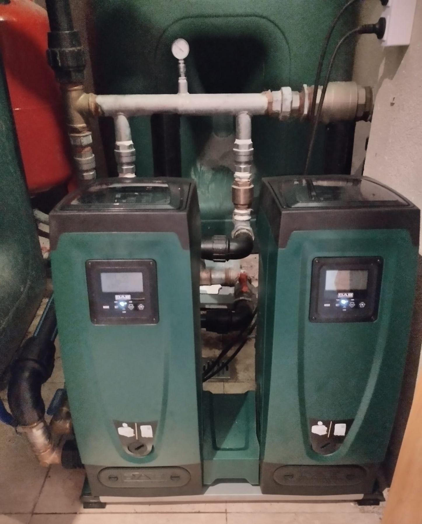 Grupo de presión y descalcificador para una pequeña comunidad de 7 viviendas.